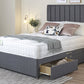 Upholstered in a choice of fabric colours with drawer storage options and comes complete with linking bars and stylish chrome effect glider feet.